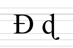 Её не следует путать с буквой Đ со штрихом, используемой в гаевице, водском алфавите, северносаамском языке, вьетнамском алфавите, и буквой «эт», используемой в исландском, фарерском и древнеанглийском языках.