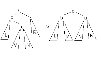 Данное вращение используется тогда, когда разница высот L-поддерева и b-поддерева равна 2 и высота С <= высота R.