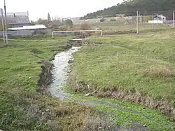 В верхнем течении на берегу реки расположен микрорайон Симферополя Каменка, она проходила на северо-запад через систему прудов[11] (которые к середине 1980-х годов высохли[10]) и практически пересыхает. Ниже пересечения реки с Феодосийским шоссе возле микрорайона Белое появляется вновь, причём далее русло идёт на юго-запад параллельно. Перед пересечением с Симферопольской объездной дорогой — образует Сергеевский пруд, располагающийся между ТРЦ FM и ТЦ НоваЦентр[12] (урез воды ок 259 м)[13]. Между улицами Автомобильной и Кечкеметской река ранее протекала по закрытому бетонному руслу, в районе ул. Титова, возле Детской больницы раньше планировалось пустить реку по трубам[11].