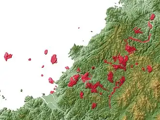 | 34°30′ с. ш. 131°36′ в. д. | |