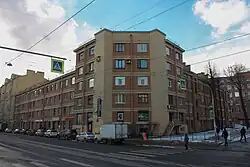 - Жилой дом завода «Красный треугольник» на углу набережной Обводного канала и Лифляндской улицы (наб. Обводного кан., 156/2). 1932.