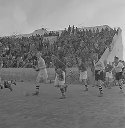 Частично восстановленный после Великой Отечественной войны, стадион в 1944 году был передан команде выборгского Дома офицеров и получил название «Спартак». Поле было приведено в хорошее состояние, благодаря чему спортсмены советской сборной специально стали приезжать в Выборг тренироваться при подготовке к соревнованиям, проводившимся в Финляндии, таким, как XV Летние Олимпийские игры. Получила известность местная футбольная команда «Динамо» (позднее «Дом офицеров», а затем — «Звезда»).
