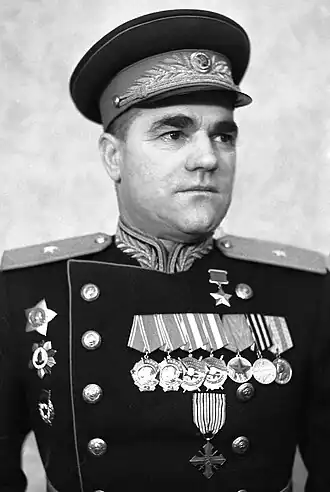 - ↑ Список к указу Президиума ВС СССР от 15.11.1950, за выслугу (30) лет в электронном банке документов «Подвиг народа» (архивные материалы ЦАМО. Ф. 33. Оп. 0170417сс. Д. 0118. Л. 122).