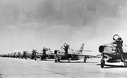 В ноябре 1954 — феврале 1955 сюда были передислоцированы ядерные истребители-бомбардировщики с авиабазы Джордж из Калифорнии. Всего здесь были дислоцировано три эскадрильи истребителей-бомбардировщиков North American F-86 Sabre. Эскадрон участвовал в ядерных учениях Carte Blanche. Однако, когда в 1957 году Франция запретила размещение ядерного вооружения на своей территории, эскадрон был переведён на японскую базу Мисава. Шамбле-Бюссьер перевели в резерв.