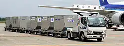 - Авиационный контейнер — максимально облегченный контейнер с алюминиевым каркасом и поликарбонатными стенками (встречаются также контейнеры, полностью сделанные из полимеров, что даёт экономию веса[3]). Вместо некоторых стенок могут использоваться мягкие шторки, дополнительно защищённые сеткой или перетягивающей лентой. Существуют также специализированные контейнеры, например, оборудованные холодильной установкой и дополнительной теплоизоляцией для перевозки скоропортящихся грузов, контейнеры для перевозки животных[4][5], съемные модули для отдыха экипажа, и другие.