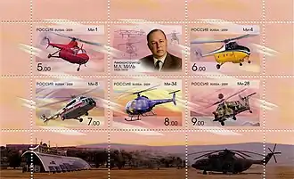 100 лет со дня рождения М. Л. Галлая (1914—1998), лётчика-испытателя: • Портрет М. Л. Галлая на фоне стратегического бомбардировщика М-3 Марки выпускались листами — 10 марок и 1 купон |