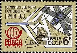 Международная спутниковая система «КОСПАС — САРСАТ»: • Советский аппарат космической системы поиска аварийных судов и самолётов Формат блока 63 × 80 мм. |