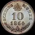 10 крейцеров | 18 | 2 | н/д | рубчатый | серебро 500-й пробы | 1858—1865 | Суммарно[Тиражи 5] — не менее 11 636 194[7] |