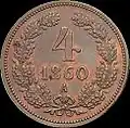 4 крейцера | 27 | 13,2 | 2,9 | гладкий | Медь | 1860—1862, 1864 | Суммарно[Тиражи 3] — 47 050 527[6] |