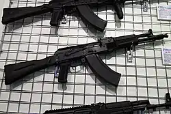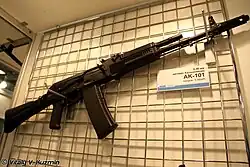 АК-101 (6П43) и АК-103 (6П45) — экспортные версии автомата АК-74М, различающиеся использованием патронов 5,56×45 мм (стандарт НАТО SS109) и 7,62×39 мм (советский патрон образца 1943 г.), соответственно.