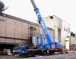 - Краны с одномоторным приводом, где все механизмы приводятся в действие от основного двигателя внутреннего сгорания — двигателя шасси[2][3].