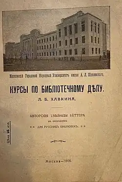 Вернувшись в Россию, Л. Б. Хавкина организовала в 1915 году при курсах по библиотечному делу Московского Городского Народного Университета имени А. Л. Шанявского «показательную» библиотеку, в которой принцип расстановки книг был скопирован с Нью-Йоркской публичной библиотеки, чтобы на этом примере библиотекари могли ознакомиться с приёмами, принятыми в США[2]. Для применения авторских таблиц Каттера для русскоязычных книг Л. Б. Хавкиной пришлось переработать их в соответствии с русскими сочетаниями слогов[2]. Существенный недостаток таблиц Каттера состоял в том, что Каттер выделил гласные буквы в особую группу, нарушив тем самым алфавитный порядок[1]. Американские библиотекари посоветовали Хавкиной, что если понадобятся авторские таблицы для русского языка, то их надо составлять по единому плану без разделения на гласные и согласные. Хавкина приняла этот совет, а также внесла и ряд других корректив[1].