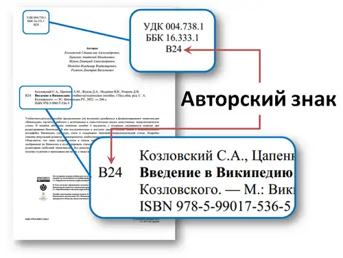 Согласно ГОСТ 7.0.4-2020, на обороте титульного листа издания может быть также приведён макет аннотированной каталожной карточки. Согласно ГОСТ 7.0.13-2011, обязательным элементом макета аннотированной каталожной карточки в издании является двузначный авторский знак. Его определяют по таблицам авторских знаков Л. Б. Хавкиной и располагают на левом поле перед второй строкой библиографической записи.