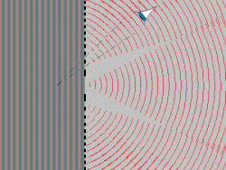Принцип основан на перекрытии разных участков изображения решёткой из узких непрозрачных полос при рассматривании с разных точек. При этом изображения стереопары состоят из таких же полос, чередующихся друг за другом. В результате, каждый глаз наблюдателя видит через щели в решётке только полосы предназначенной для него части стереопары, тогда как соседние закрыты растром.