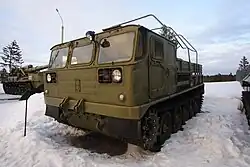 - Гусеничные транспортёры-тягачи многоцелевого назначения — небронированные, полубронированные и бронированные тягачи, предназначенные для перевозки личного состава и материальных средств, буксировки артиллерийских орудий и транспортных либо специальных прицепов, комплектации различных систем вооружения и военной техники. Заложенная в такие машины возможность одновременных буксировки прицепной системы и размещения на платформе боевого расчёта и боеприпасов обеспечивает постоянную боевую комплектность соответствующей системы вооружения. В зависимости от грузоподъёмности классифицируются как лёгкие, средние и тяжёлые. К данному типу автотракторной техники также относят снегоболотоходные гусеничные транспортёры-тягачи, такие как ГТ-СМ[1].