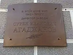 - Памятная доска на доме № 16 по улице Чаадаева (Нижний Новгород), где Агаджанов жил в 1942—1952 годах.