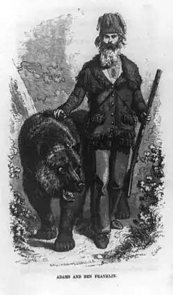 Зимой 1854 года Адамс поймал огромного калифорнийского гризли с помощью большой ловушки. Этот медведь получил имя Самсон.