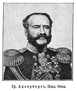 Граф (с 1 июля 1847) Владимир Фёдорович[2] Адлерберг 1-й (имя при рождении Эдуард Фердинанд Вольдемар фон Адлерберг, нем. Eduard Ferdinand Woldemar von Adlerberg, или Эдвард Фердинанд Вольдемар Адлерберг швед. Edvard Ferdinand Voldemar Adlerberg; 18 (29) ноября 1791 — 8 (20) марта 1884) — приближённый императора Николая I, генерал от инфантерии (1843), генерал-адъютант (1828), в 1852—1870 годах — министр двора и уделов. Брат статс-дамы Ю. Ф. Барановой.