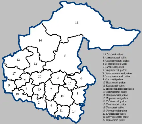 | 19 | Ялуторовский район | ![]() | ![]() | 2 947,4 | ↗15 970[7] | город Ялуторовск |
