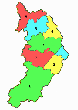 | № | Флаг | Герб | Название | Административный центр | Площадь, км²[3] | Население, чел., (2021 г.) |