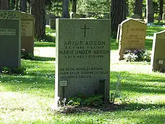 Могила А. Адсона и М. Ундер на кладбище Скугсчюркогорден в Стокгольме. 2010 год.
