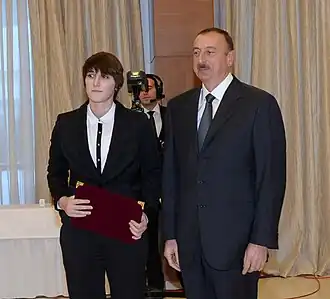 - ↑ I Avropa Oyunları qaliblərinin və Azərbaycanda idmanın inkişafında xidmətləri olan şəxslərin təltif edilməsi haqqında Azərbaycan Respublikası Prezidentinin Sərəncamı (азерб.). president.az. Дата обращения: 30 июля 2018. Архивировано 30 июля 2018 года.