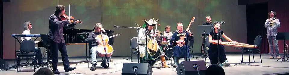 Алексей Айги (второй слева), Ансамбль 4’33" и группа «Намгар» исполняют музыку из телесериала «Сыщик Путилин» на фестивале «Роза Мира» в Московском Доме музыки, 13 ноября 2008