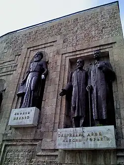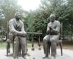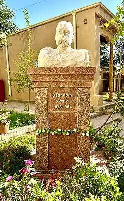 Дом-музей Садриддина Айни в Регистане вместе с бюстом; Мемориальный музей Садриддина Айни основан 19 мая 1967 года согласно постановлению правительства Узбекистана от 16 июня 1964 года. В открытии принимали участие руководители Узбекистана и Таджикистана, также общественность Самарканда (Самаркандская область, Узбекистан)[21];
