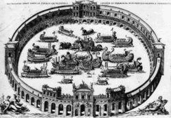 В своей работе (опубликованной в 97 н. э.) «О водопроводах» («De aquis urbis Romae»), написанной в двух томах и содержащей историю и описание системы водоснабжения Рима, Секст Юлий Фронтин скудно описывает Аква-Альсиетина. Это объясняют тем, что во второй половине первого столетия нашей эры прекратились навмахии.