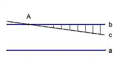 - При продолжении двух прямых от точки их пересечения расстояние между ними неограниченно возрастает[13].