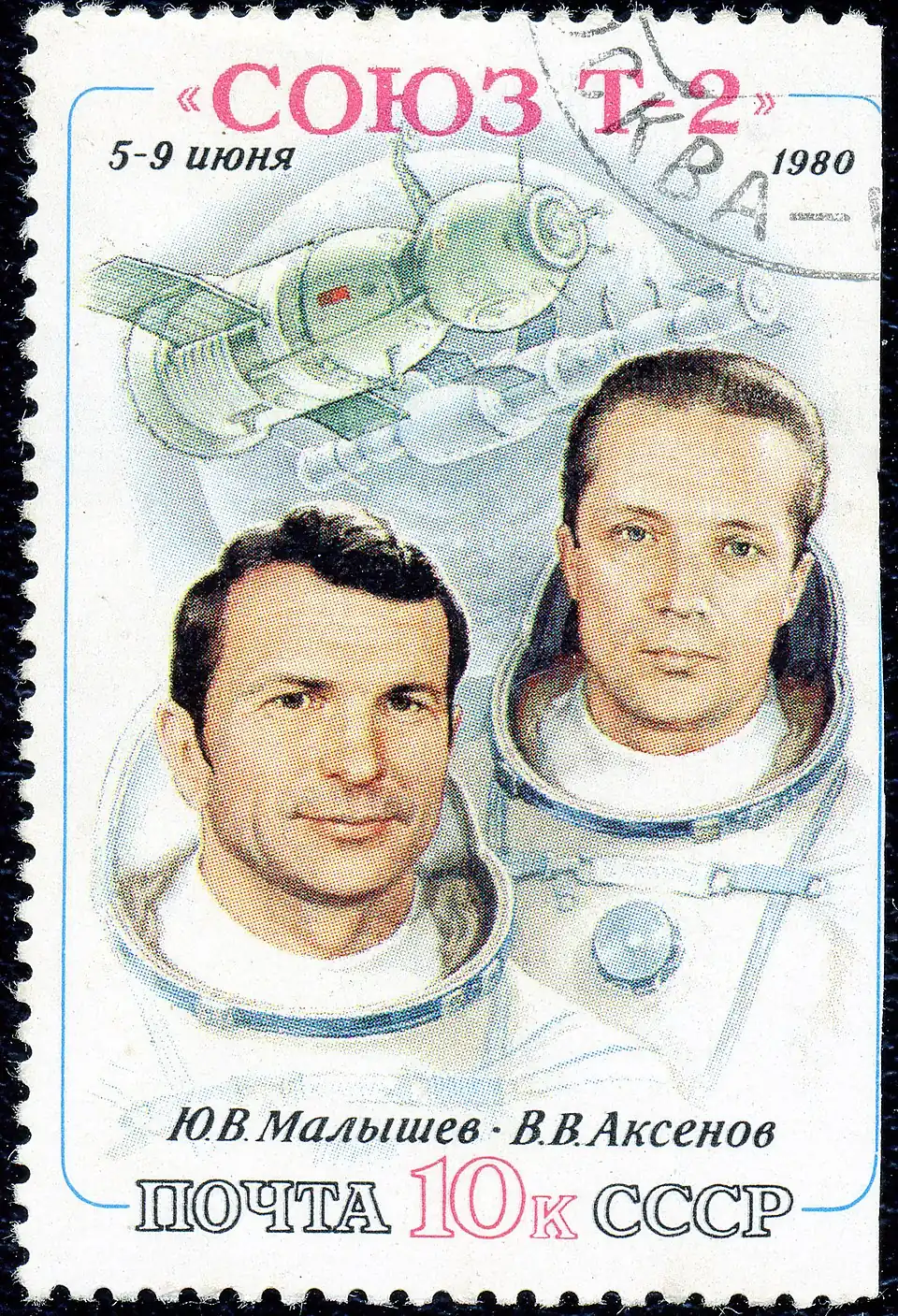 Почтовая марка СССР 1976 года. «Союз-22», фотографирование Земли из космоса. Номер по каталогу ЦФА — 4667.11 июня 2011 года в Рязани на улице Циолковского в сквере имени Уткина открыт бюст В. В. Аксёнову;