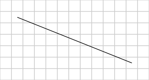 Отрезок проводится между двумя точками — и , где в этих парах указаны столбец и строка соответственно, номера которых растут вправо и вниз. Сначала мы будем предполагать, что наша линия идёт вправо и вниз, причём горизонтальное расстояние превосходит вертикальное , то есть наклон линии от горизонтали — менее 45°. Наша цель состоит в том, чтобы для каждого столбца x между и определить, какая строка y ближе всего к линии, и нарисовать точку .