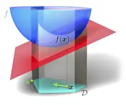 Это выполняется также для (неизвестного) оптимального решения . То есть . Лучшая нижняя граница с учётом точки задаётся формулой