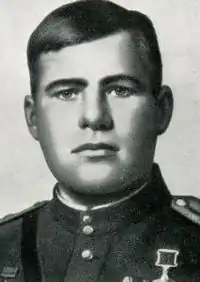 1 июля 1944 года в бою за населённые пункты Шурманы, Лесина и Меруги совершил со взводом обходный манёвр с фланга и при выходе в районе Лесины встретился с двумя самоходными установками противника, задерживавшими продвижение основной группы советских танков и пехоты. Вступив в единоборство с ними, дважды заставил их отходить, тем самым открыл путь для советских танков и личным примером увлёк за собой всю группу преследования.