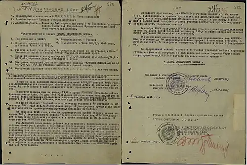 6. Указ Президиума Верховного Совета СССР «О присвоении звания Героя Советского Союза начальствующему и рядовому составу Красной Армии» от 4 февраля 1942 года // Ведомости Верховного Совета Союза Советских Социалистических Республик : газета. — 1943. — 7 февраля (№ 6 (212)). С. 1. Архивировано 18 ноября 2021 года.