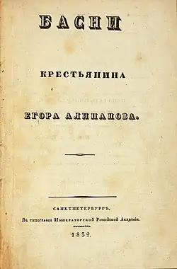 - Басни крестьянина Егора Алипанова. — Санкт-Петербург : тип. Рос. акад., 1832. — [6], 121 с.