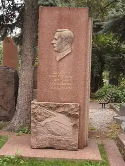 Похоронен в Москве на Новодевичьем кладбище (1 участок, 43 ряд, 30 могила)[5], недалеко от могилы своей сестры Надежды, похороненной в 1932 году. На его могиле стоит памятник работы скульптора Сергея Меркурова с барельефом танка. В 1974 году рядом была похоронена жена Евгения Александровна[4].