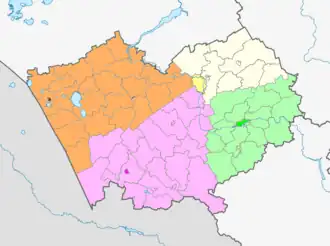 Территория — Бийский, Зональный, Красногорский, Солтонский, Алтайский, Быстроистокский, Петропавловский, Троицкий, Ельцовский, Целинный, Смоленский, Советский, Солонешенский районы[1].