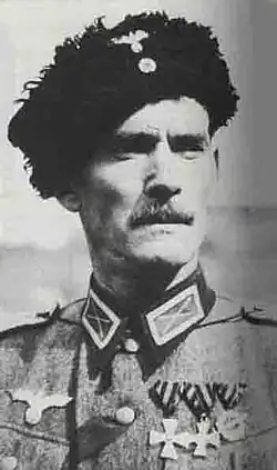Служил в РОА (майор): начальник отдела пропаганды штаба ВВС КОНР. С 1945 года проживал в США, где и умер 3 ноября 1989 года. Похоронен в Пасифик-Гров (США).