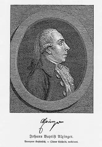 - Альксингер, Иоганн Батист // Энциклопедический словарь Брокгауза и Ефрона : в 86 т. (82 т. и 4 доп.). — СПб., 1890—1907.