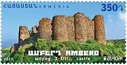 ![]() Вид на церковь и замок Амберд, гору Арарат | |