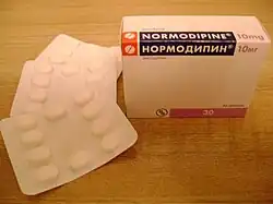 Амлодипи́н — блокатор медленных кальциевых каналов 2-го поколения, оказывает антиангинальное[1] и гипотензивное действие. Препарат является смесью стереоизомеров.