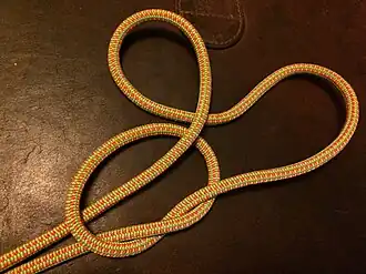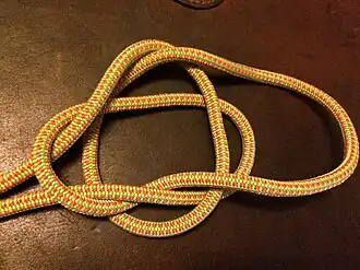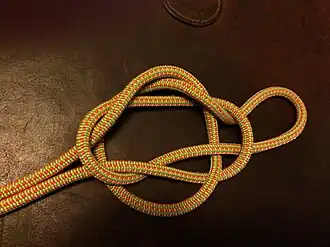 ![]() Амфорный узел в незатянутом состоянии, который завязан синтетическим репшнуром | |