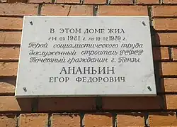 Егор Фёдорович Ананьин (1924—1989) — советский строитель, бригадир штукатуров, Герой Социалистического Труда (1966), Почётный гражданин города Пензы (1972).