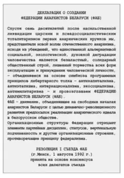 Летом 1992 года по инициативе Олега Новикова на съезде в Минске активисты Минска, Гомеля и Светлогорска объединились в Федерацию анархистов Беларуси (ФАБ).