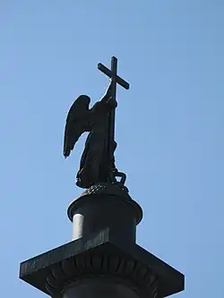 Мало того, что сама колонна выше Вандомской, фигура ангела превосходит по высоте фигуру Наполеона I на Вандомской колонне. Кроме того, ангел крестом попирает зме́я, что символизирует мир и покой, которые принесла в Европу Россия, одержав победу над наполеоновскими войсками.