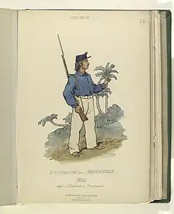Регулярная армия республиканцев состояла преимущественно из индейцев. Доля индейцев среди высшего командного состава была также велика[33]. Народное сопротивление было преимущественно партизанским. Партизаны играли решающую роль в 1863—1866 гг. Регулярная армия в этот период также действовала партизанскими методами. Такими соединениями были «армия центра» и армия генерала Порфирио Диаса[34]. Партизанскими частями командовали в основном кадровые офицеры, но встречались также и командиры из числа штатских людей. Среди руководителей партизан выделялись Рамон Корона, Николас Ромеро, Николас Регулес, Висенте Рива Паласио[35].