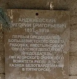 16. Обелиск на месте казни председателя пятигорского совета Г. Г. Анджиевского // Объекты культурного наследия : сайт ФГУП ГИВЦ Минкультуры России. — Дата обращения: 09.08.2016.
