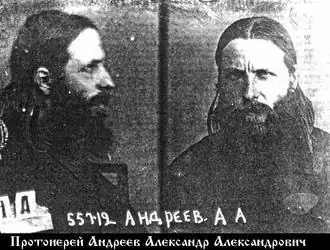 25 марта 1929 года Александр Андреев был арестован и привлечён к ответственности по ст. 58 п. 10 за то, что, «являясь служителем религиозного культа, вел среди верующей массы антисоветскую агитацию, организовав и поддерживая существование нелегального сестричества». Кроме того, он обвинялся в том, что «молился за убиенных и находящихся в темницах открыто при всех с амвона и говорил проповеди религиозного содержания», и в том, что сестричество собирало деньги и иные пожертвования «для помощи находящимся в ссылке и тюрьмах духовенству и членам церковных советов».