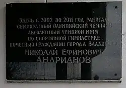 14 октября 2011 года во Владимире на здании ДЮСШ олимпийского резерва по спортивной гимнастике имени Н. Г. Толкачёва была торжественно открыта мемориальная доска памяти Николая Андрианова.